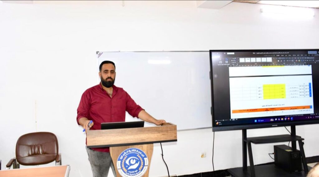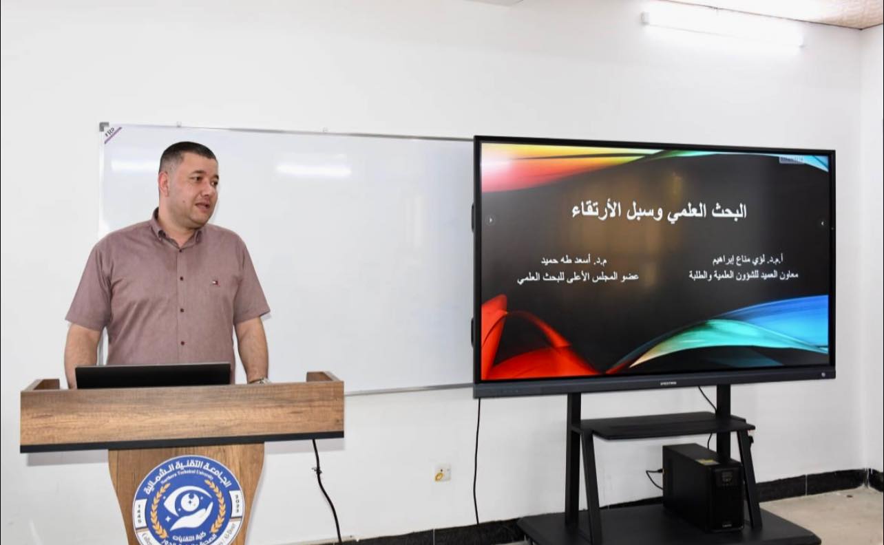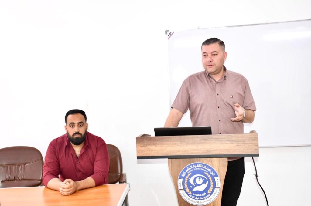 برعاية السيدة رئيس الجامعة التقنية الشمالية الاستاذ الدكتورة علياء عباس العطار وبأشرف السيد عميد الكلية الاستاذ المساعد الدكتور مقصود عادل محمود نظمت كلية التقنيات الصحية والطبية الدور يوم الاثنين الموافق ٣٠-٦-٢٠٢٥ ورشة عمل بعنوان ( البحث العلمي وسبل الارتقاء ) تم القاءها من قبل كل من :
